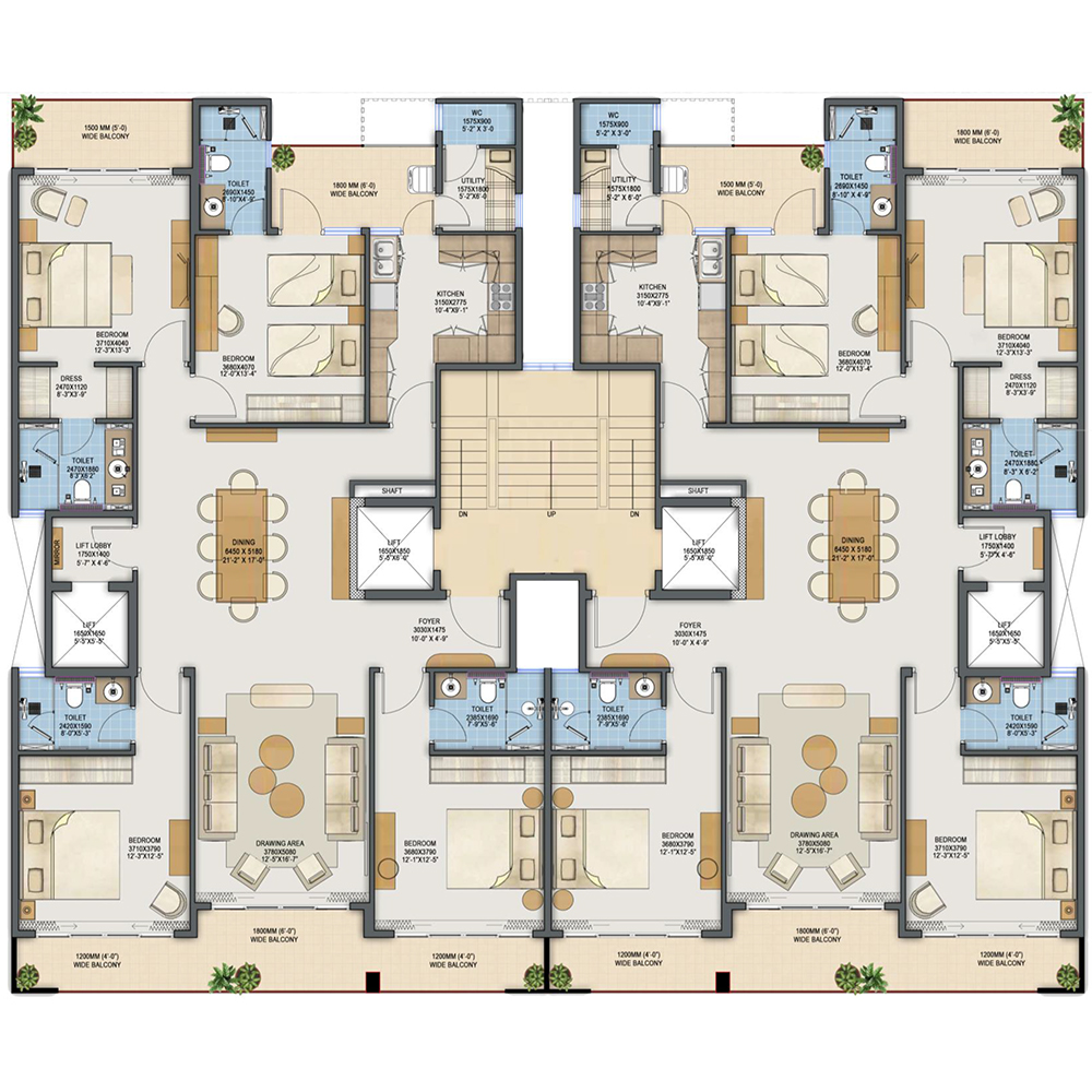 | 4BHK + Powder Room + Family Launge + Servant Room | G+4 | Size: 1750sqft 4 5 2 | 5.60 Cr |
